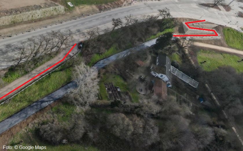 Oder sie versieht alternativ die ca. 100 Meter westlich gelegene Rampe für landwirtschaftliche Fahrzeuge mit einer für den Fahrrad-Zweirichtungsverkehr ausreichend breiten Fahrspur mit für Fahrräder geeignetem Fahrbahnbelag.