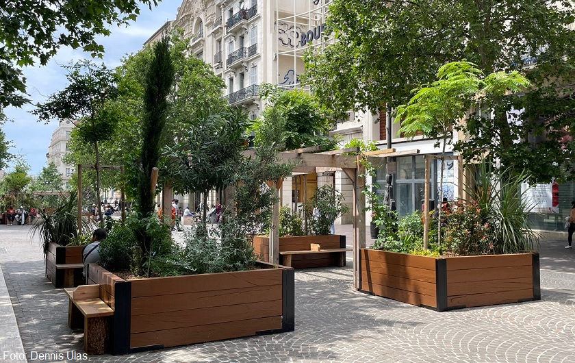 - Werden temporäre Kühlungsmaßnahmen wie mobile Wasserspiele, Sprühnebel-Anlagen oder Pop-Up-Schattenstrukturen für Hitzewellen-Perioden in Betracht gezogen?